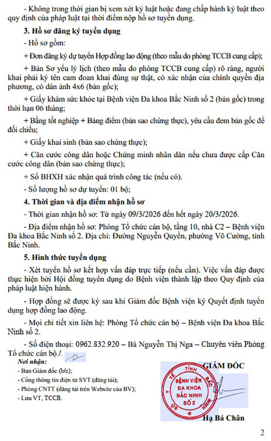 – Địa điểm: Phòng Tổ chức cán bộ — Bệnh viện Đa khoa Bắc Ninh số 2.