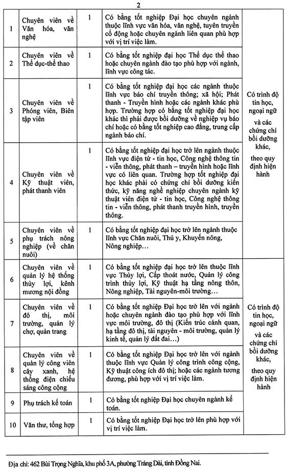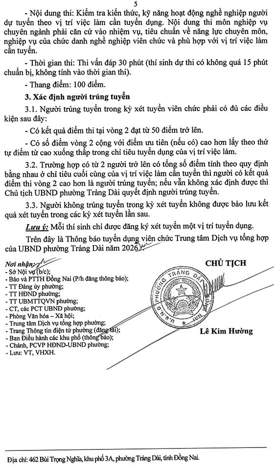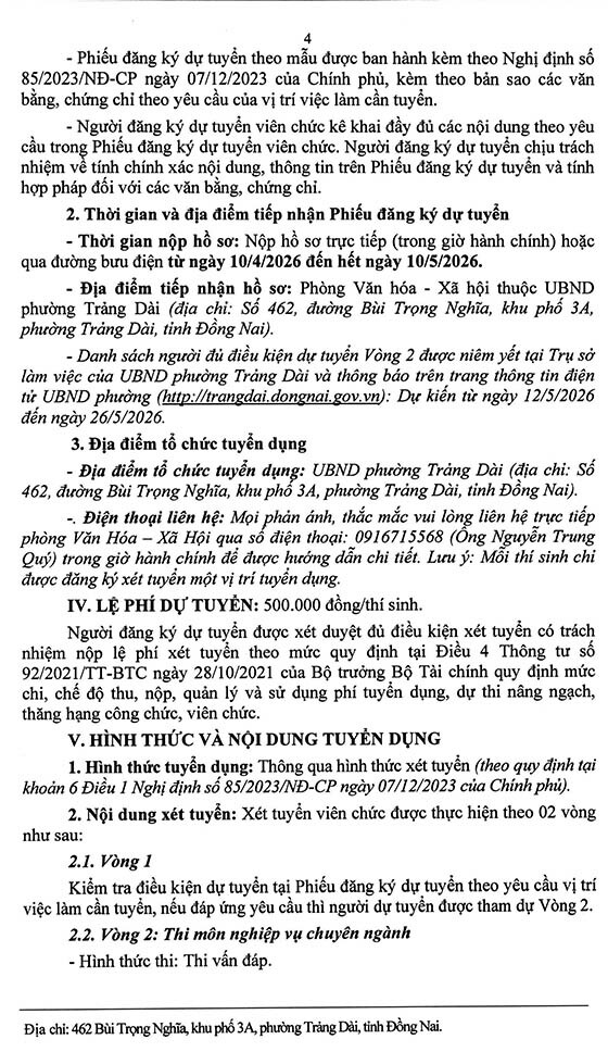Thông Báo tuyển dụng viên chức Trung tâm Dịch vụ tổng hợp phường Trảng Dài năm 2026, như sau:
