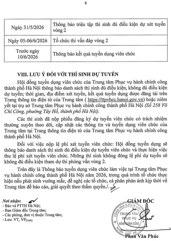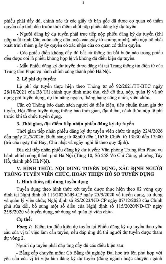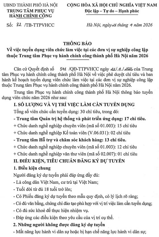 Trung tâm Phục vụ hành chính công TP. Hà Nội tuyển dụng viên chức năm 2026