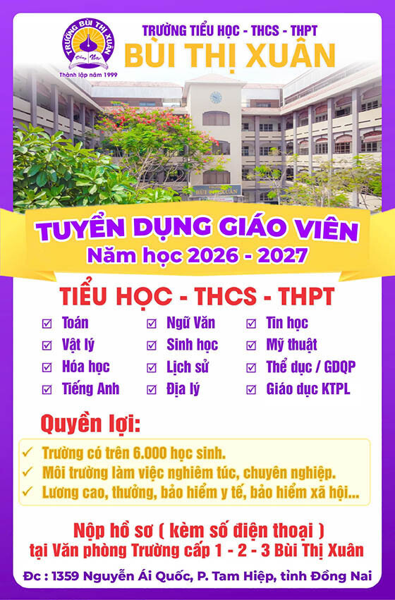 Trường Bùi Thị Xuân, Đồng Nai tuyển dụng giáo viên năm học 2026 – 2027