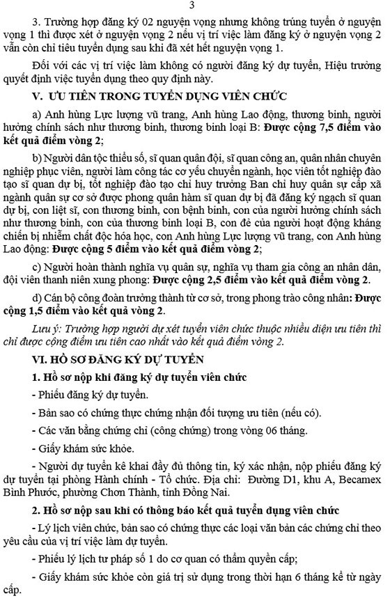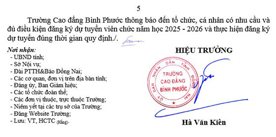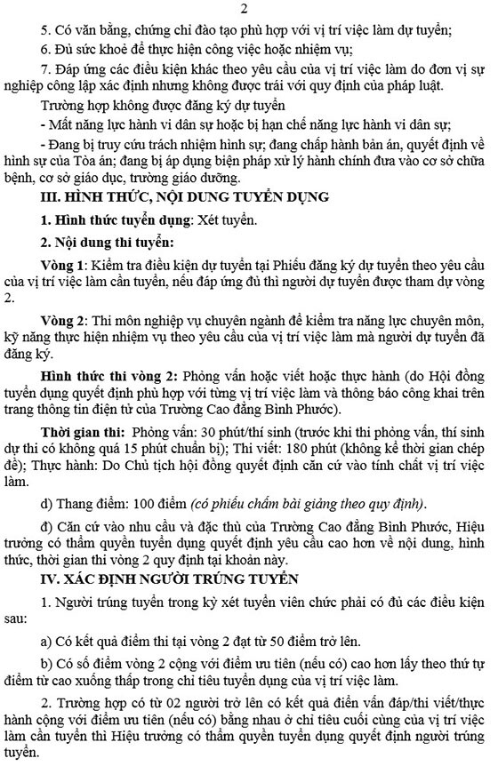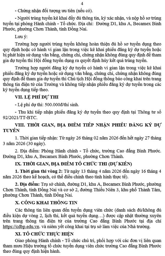 Trường Cao đẳng Bình Phước thông báo tuyển dụng viên chức năm học 2025 – 2026, cụ thể như sau: