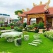 Phong cảnh hoa viên Bình An đẹp như lạc vào vườn Thượng Uyển với những hàng cây Sala vô ưu, điểm xuyến bởi trăm loài hoa khoe sắc mỗi mùa, cùng những hồ cá Koi Nhật Bản được tôn lên bởi những bồn cây bonsai quý giá.