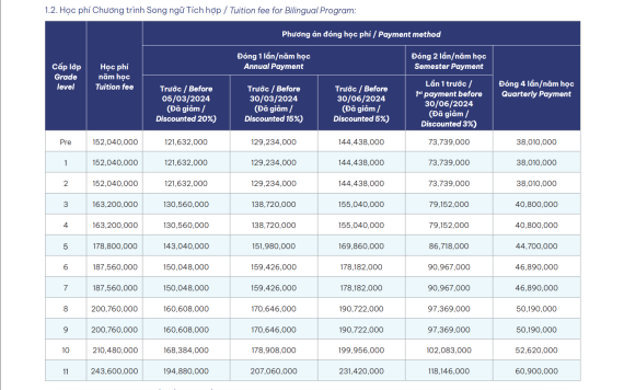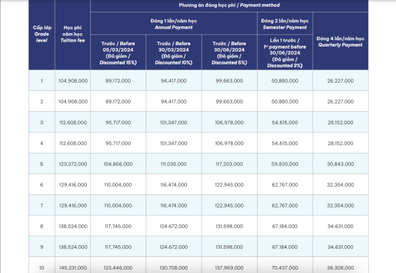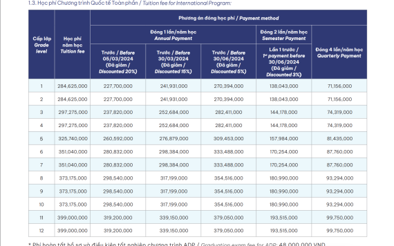 - Phí nhập học: 12.000.000 VNĐ/Học sinh