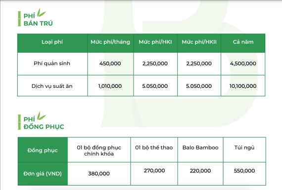 Mức phí của trường Trường Quốc tế Bamboo không quá cao so, phù hợp kinh tế của nhiều gia đình. Cụ thể mức học phí của trường như sau: