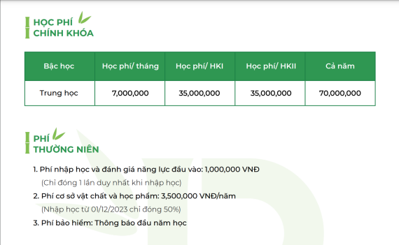 Học phí Trường THCS, THPT Ngọc Viễn Đông là bao nhiêu?