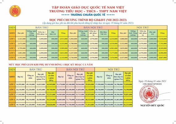 Học phí Trường Quốc Tế Nam Việt là bao nhiêu?