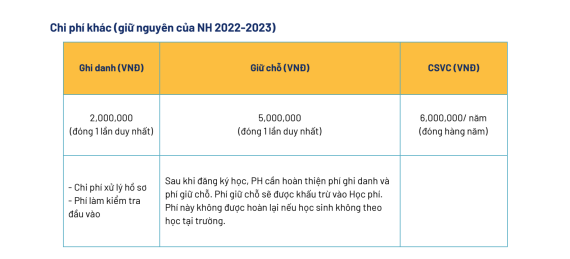 Ngoài học phí, những khoản phí khác được quy định như sau:
