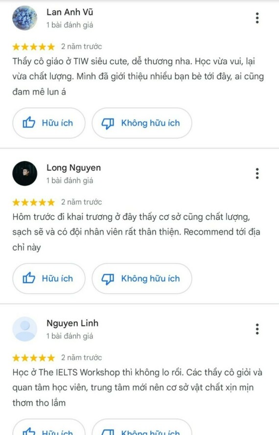 - Điểm nổi bật của Trung tâm Workshop: The IELTS Workshop đồng hành cùng giấc mơ chinh phục IELTS của mọi học viên với đội ngũ giảng viên 8.0 IELTS chuyên môn cao và lộ trình học ưu việt được xây dựng bởi thầy Đặng Trần Tùng - người Việt Nam đầu tiên 4 lần đạt 9.0 IELTS. Trung tâm liên tục khai giảng các khóa học khác nhau dành cho tất cả trình độ từ 0 đến 7.5+ phù hợp với mọi đối tượng học viên trên khắp cả nước.