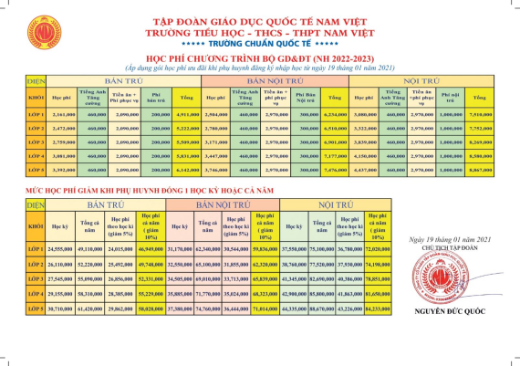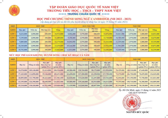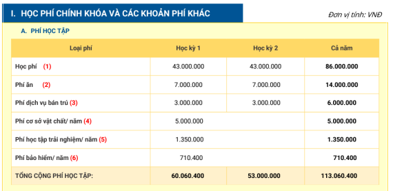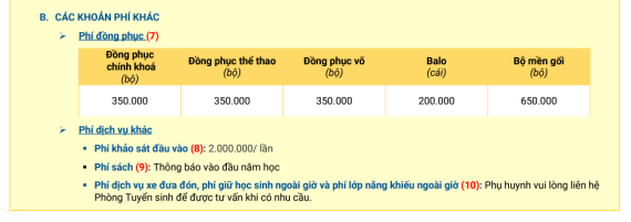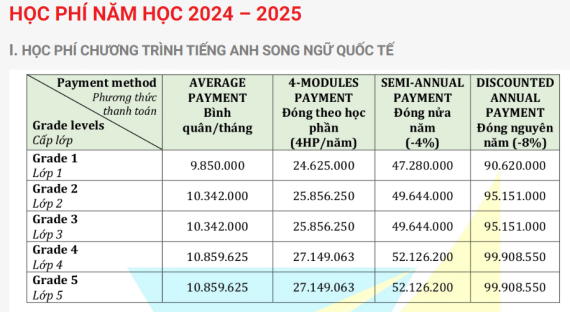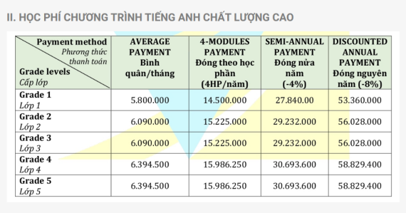Quý cha mẹ có thể tham khảo thông tin về mức học phí của bậc tiểu học với các khối lớp từ lớp 1 đến lớp 5 của nhà trường ở dưới đây:
