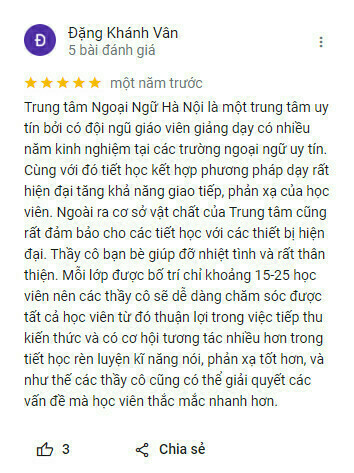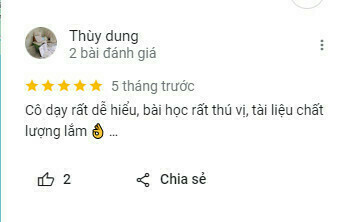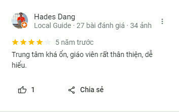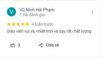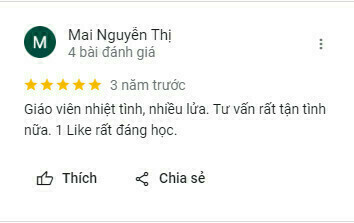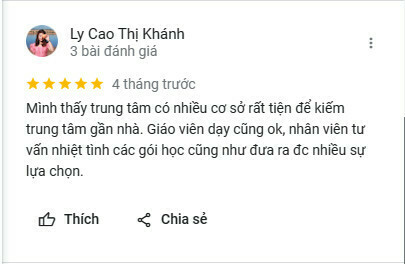 Giáo viên luôn nhiệt tình, tận tâm, sẵn sàng hỗ trợ học viên trong quá trình học tập. Phương pháp giảng dạy hiệu quả giúp học viên nắm vững kiến thức và rèn luyện kỹ năng làm bài thi hiệu quả.Cơ sở vật chất hiện đại. Lộ trình học tập linh hoạt